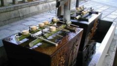 1. 鳥居で一礼し、手を浄め、本殿前で6拍手をする。